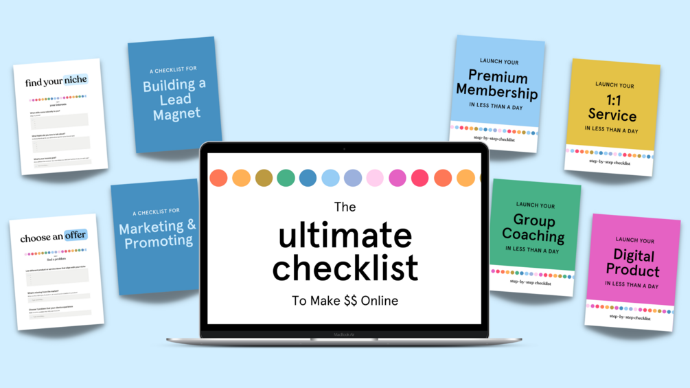If you're ready to to finallllllllly build an online biz that makes sales while you'e at the grocery store, on vacation, or binge-watching Succession- this is the checklist for you.
